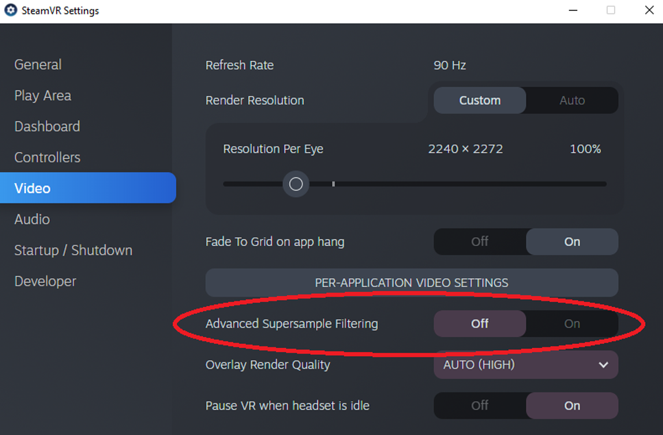 SteamVR video setting on no more than 70%